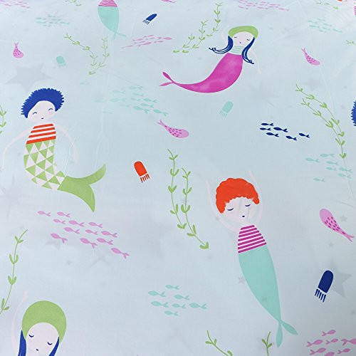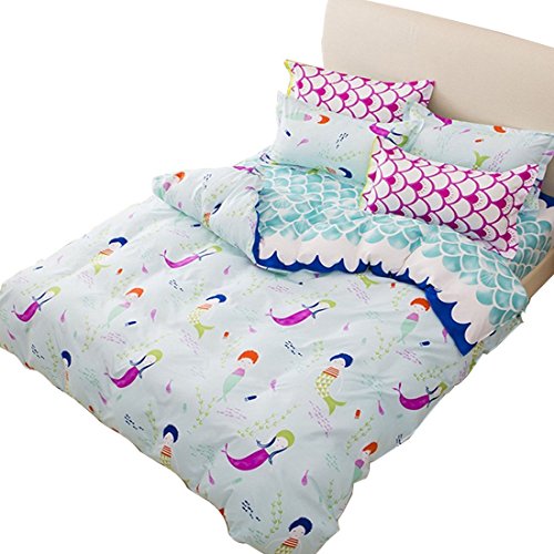 Sookie 3 Piece Duvet Cover Set with 2 Pillow Shams - 800 Thread Count Luxurious&Extremely Durable Premium Bedding Collection - Blue wave Small mermaid pattern - Twin Size