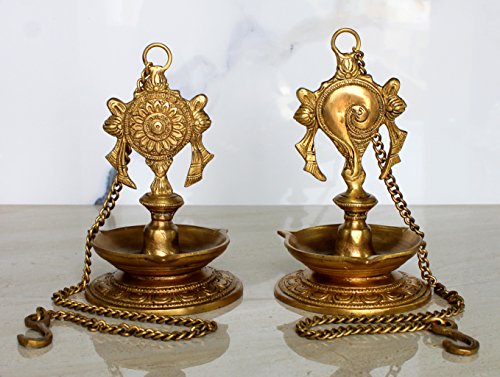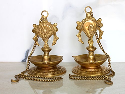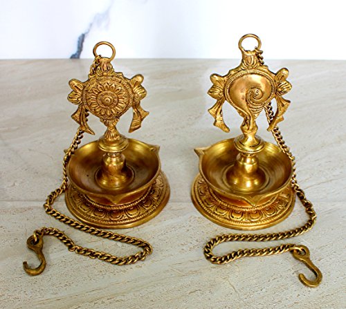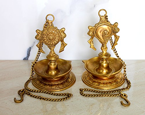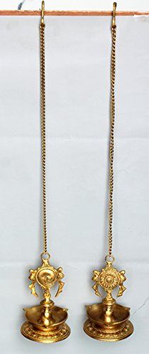 StonKraft Ideal Gift - Pair Of Brass Hanging Diya, Oil Lamp, Lamp For Home and Office (Hanging Length 25.75")
