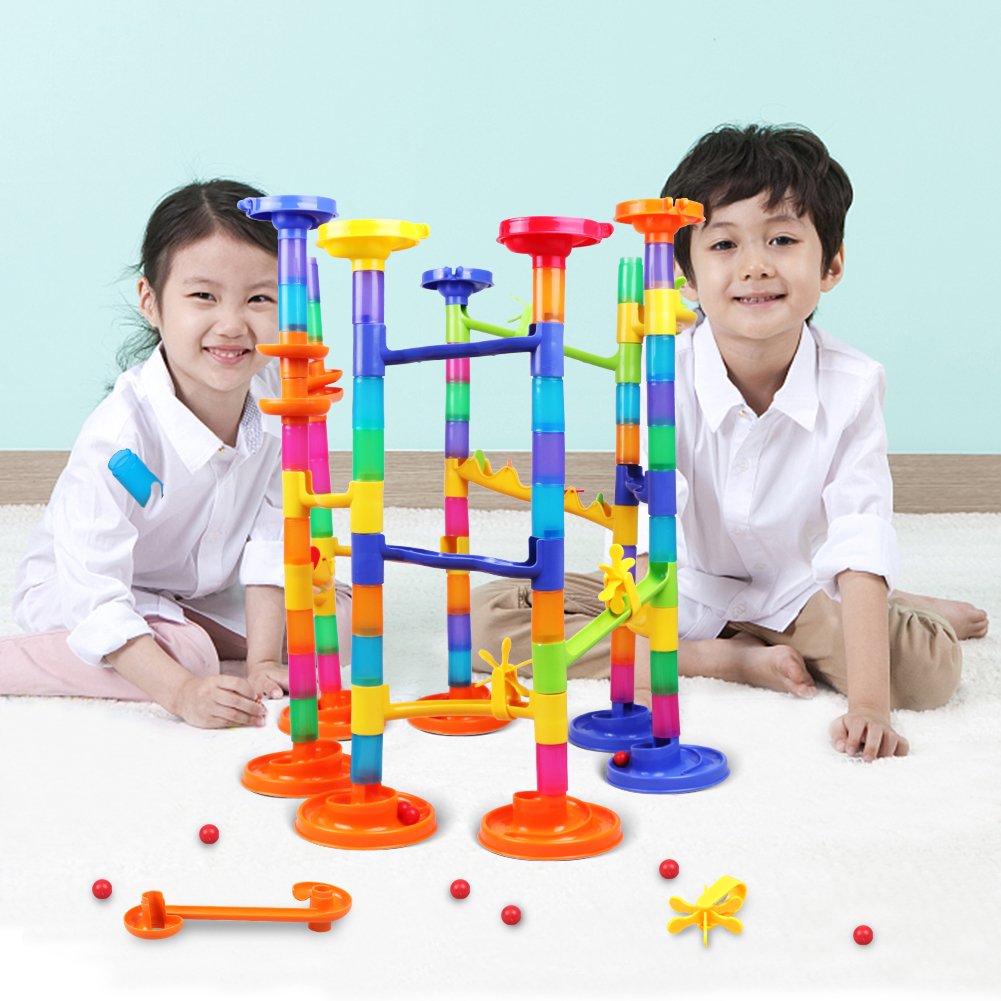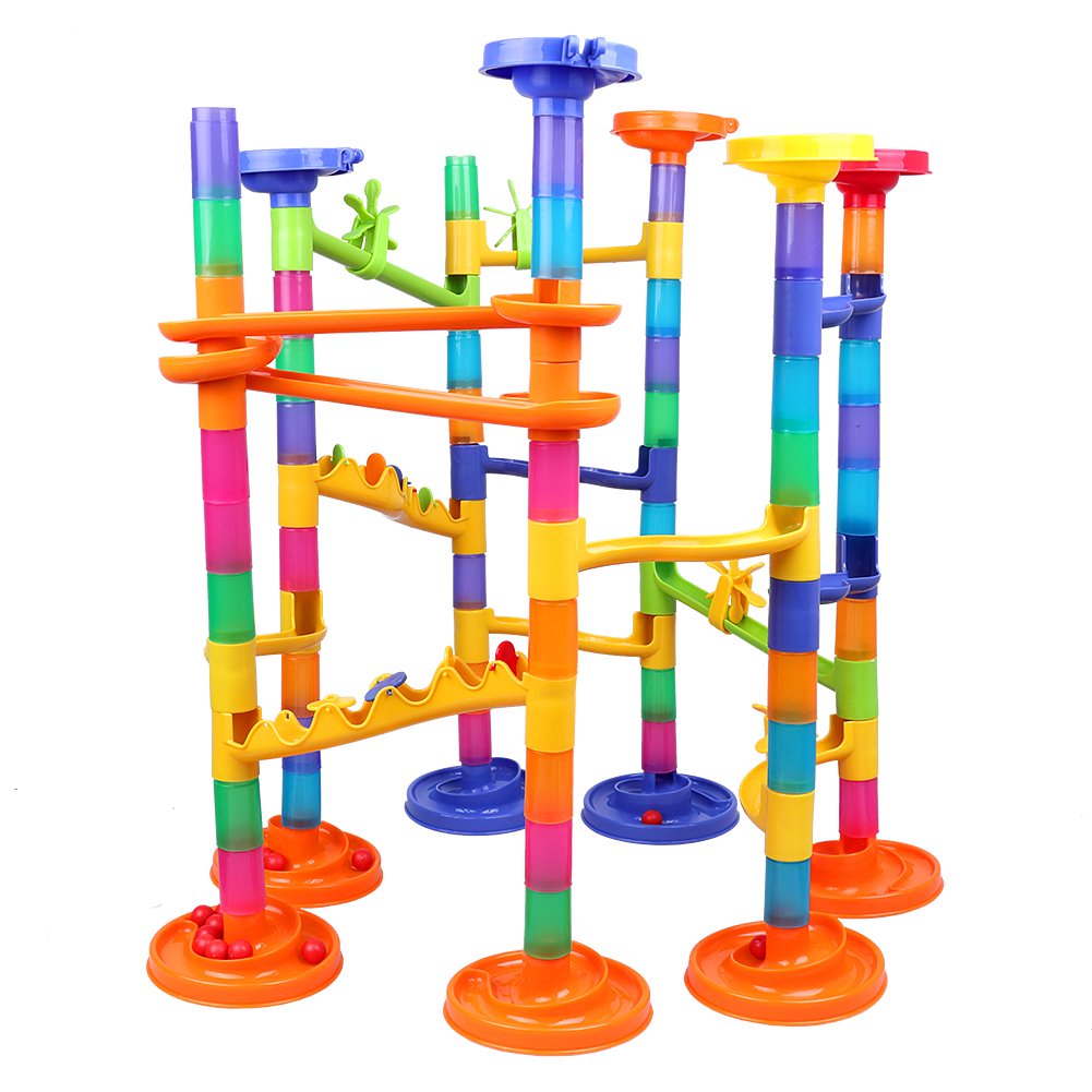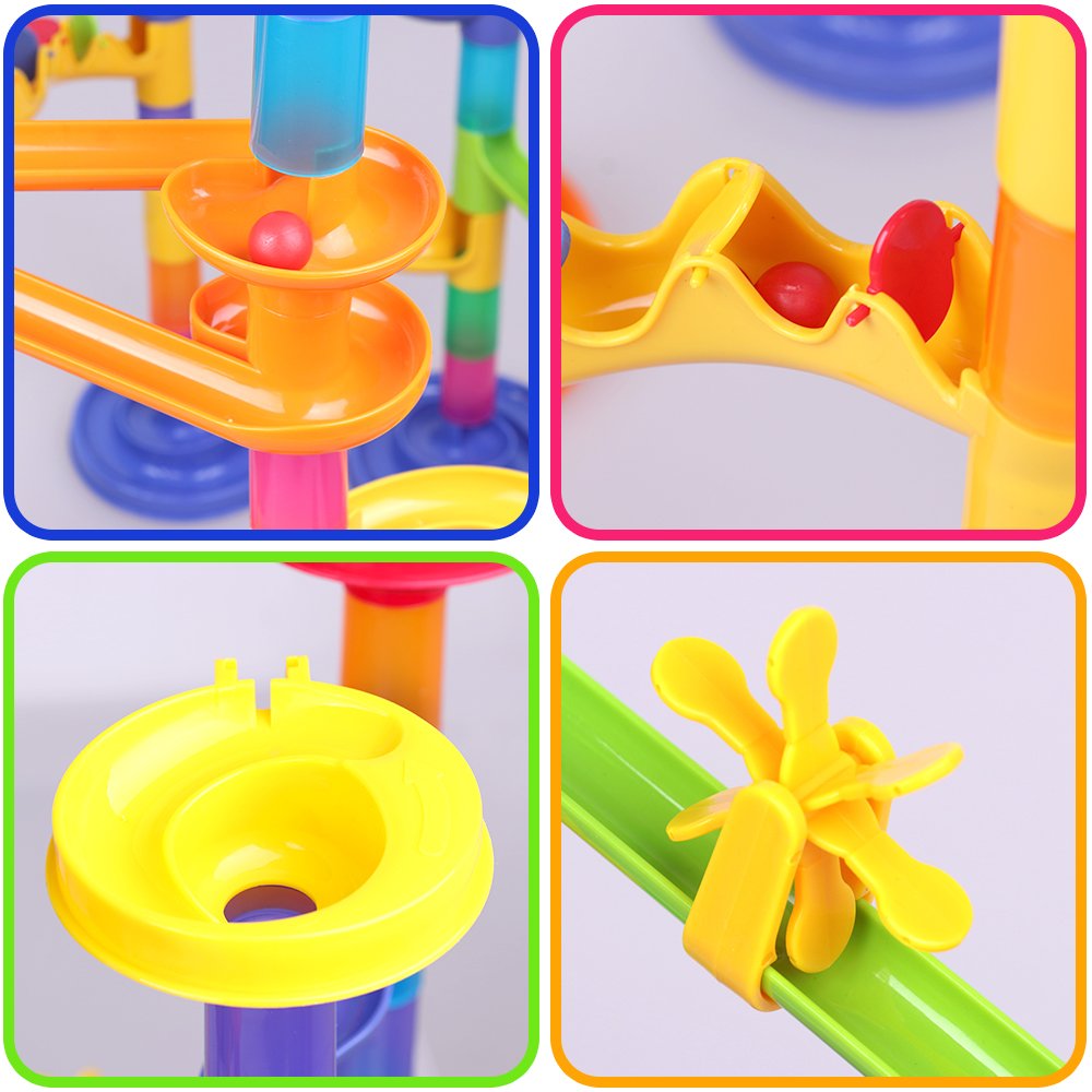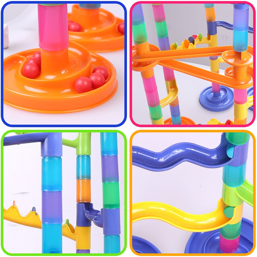 Combine various parts freely to create a course, roll the ball and have fun.