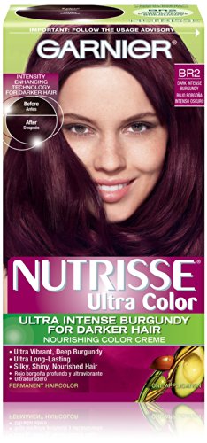 Garnier Nutrisse ultra color nourishing color creme series transforms naturally dark hair with ultra reflective tones. Choose from the 5 ultra color shade families: ultra light blondes take dark brunettes to blonde without bleach, ultra intense reds offer intense, vibrant red tones for darker hair, ultra lightening browns lift dark hair up to four shades lighter without the brassiness, and ultra reflective blacks transform even the darkest hair with visibly reflective, shiny tones. Ultra color nourishing color creme comes with an ampoule of grape-seed oil to start nourishing hair while you color. The non-drip formula spreads easily and smells great and the after-color conditioner is infused with 3 fruit oils, avocado, olive and shea for silkier, shinier, more nourished hair.Feature