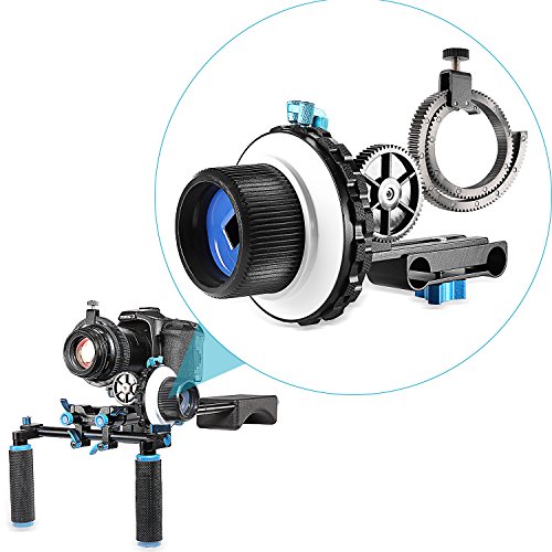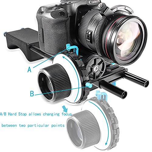 Neewer A-B Stop Follow Focus C2 with Gear Ring Belt for DSLR Cameras Such as Nikon,Canon,Sony DV/Camcorder/Film/Video Cameras,Fits 15mm Rod Mounts,Shoulder Supports