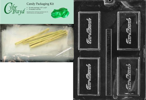 Cybrtrayd "Bar Mitzvas" Business Card Chocolate Candy Mold with Packaging Bundle of 25 Cello Bags, 25 Gold Twist Ties and Chocolate Molding Instructions