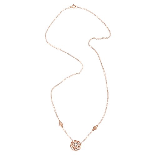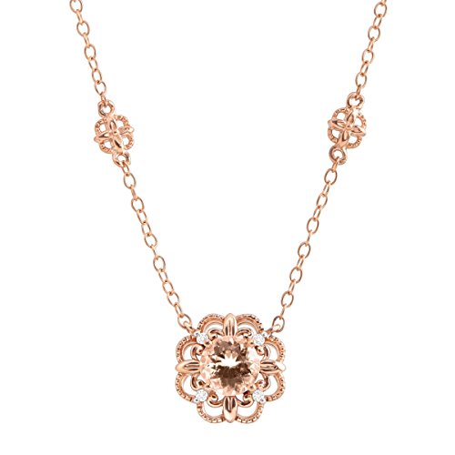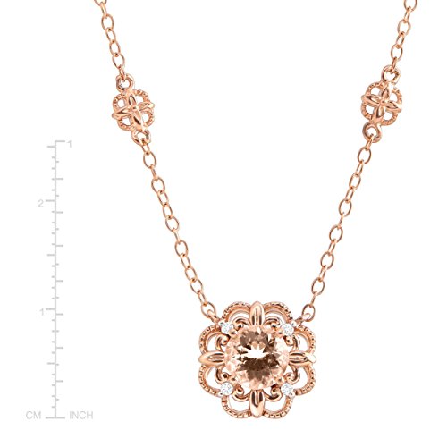 This subdued, stylized flower will always be in style! A 3/4 ct round-cut natural morganite sits in the center of this flower-shaped necklace, featuring round-cut diamond accents for added shine and crafted in 10K rose gold. Feature piece measures 7/16 by 7/16 inches with a total length of 17 inches.Feature