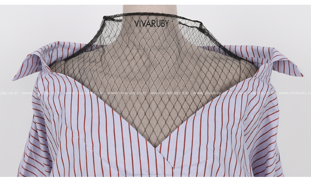 オフショルダー・デザインとネットディテールの組み合わせで