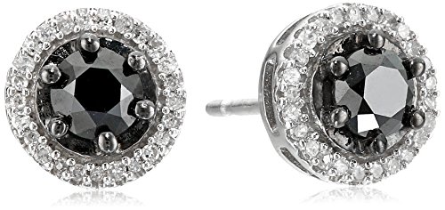 Sterling Silver Black and White Diamond Round Stud Earrings (1 cttw)