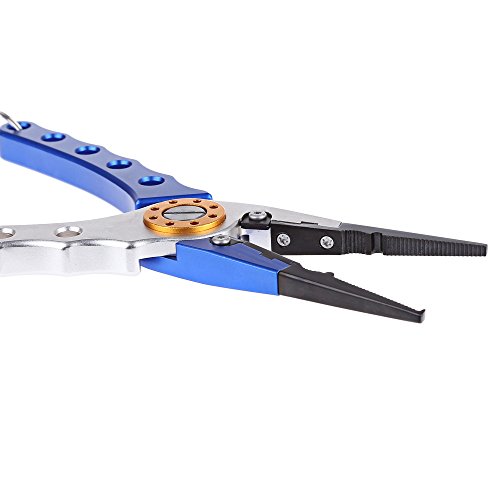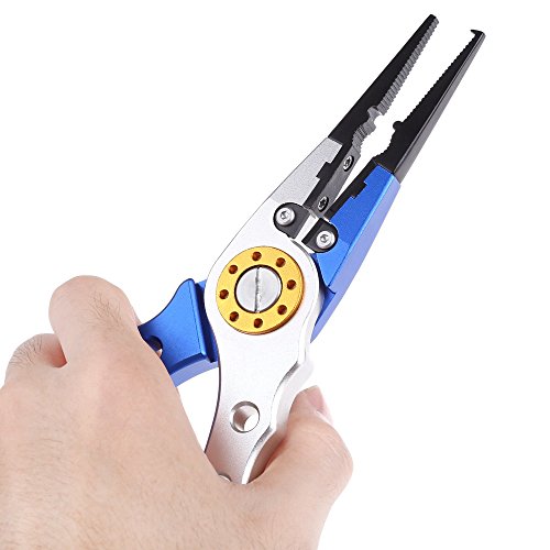 -. Feature : - Multifunctional, can be used to remove hook, cut off wire, take out steel hoop, etc. / - Aluminium alloy and stainless steel material, light, durable and corrosion resistant / - Sharp and pointed, can cut any kind of fishing string / - Ergonomic handle design, comfortable to use