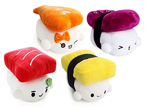 SUSHI 6" (15cm) Cute Plush Pillow Cushion Doll x4 SET Toy Gift Bedding Room Decoration Kawaii (Octopus+Egg+Shrimp+Tuna)