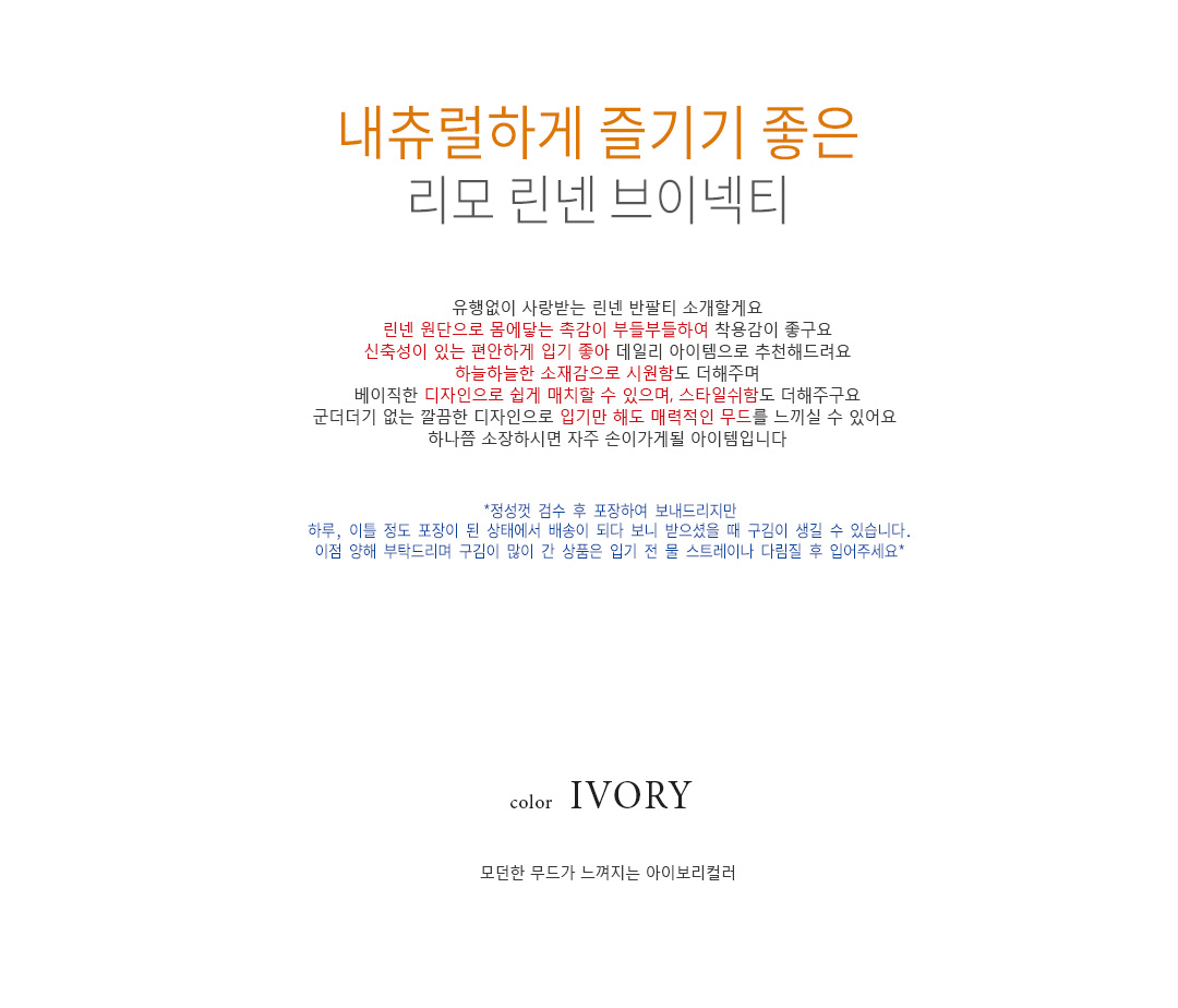 | 소재(Material) | 린넨(linen/)65%+레이온(rayon/)35% | |