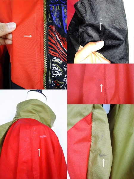 Ladies ブランド- カラー赤・黒・オリーブ メール便不可 コンディション★★★ 素材ナイロン 表記サイズM スタッフコメントフード収納可能。裏地なし。ジップ横に素材キズあり。両袖数か所にヨゴレあり。右肩、裾オリーブ部分にヨゴレあり。 実寸サイズ 着丈 69.5 cm 身幅 66 cm 袖丈 72 cm ラグラン袖の為、襟元から袖先までの計測 ※ウエスト・ヒップ以外は平置き採寸