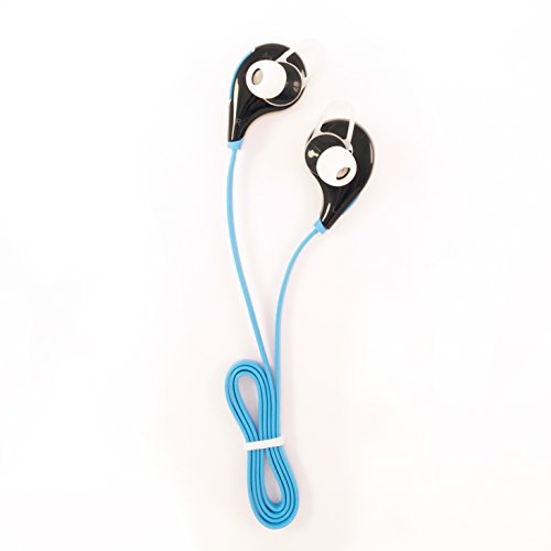 Beihont BH307 Wireless SweatProof Sport Bluetooth Earbud Headphones With Microphone. Black earbud with Blue connecting wire.