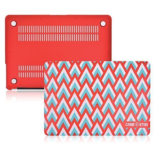 Case Star ® 13-inch Chevron Spike Accent Pattern Rubberized Macbook Hard Shell Case Cover for Apple Macbook Air 13 Inch A1369 & A1466 (RD) Turqouise Blue - White