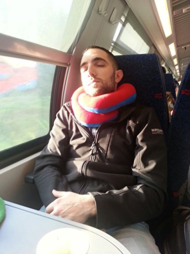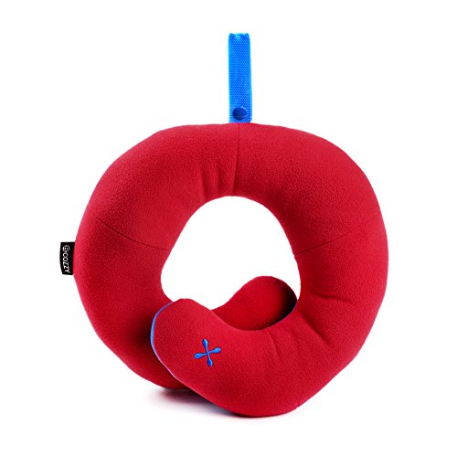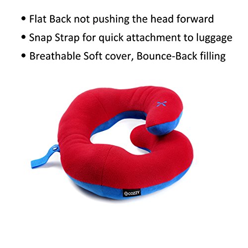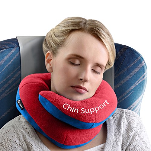 BCOZZY Chin Supporting Travel Pillow - Supports the Head, Neck and Chin in Maximum Comfort in Any Sitting Position. A Patented Product. Adult Size, RED