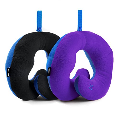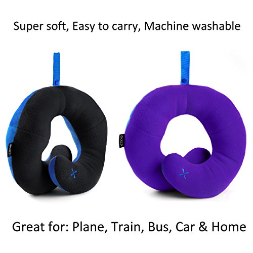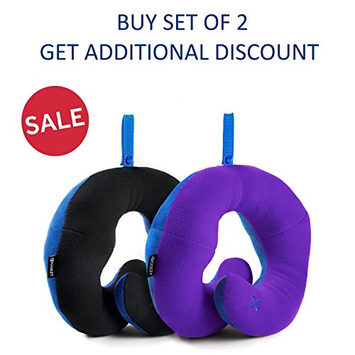 BCOZZY Chin Supporting Travel Neck Pillow - Supports the Head, Neck and Chin in Maximum Comfort in Any Sitting Position. A Patented Product. Set of 2 SALE- Adult Size, BLACK+PURPLE