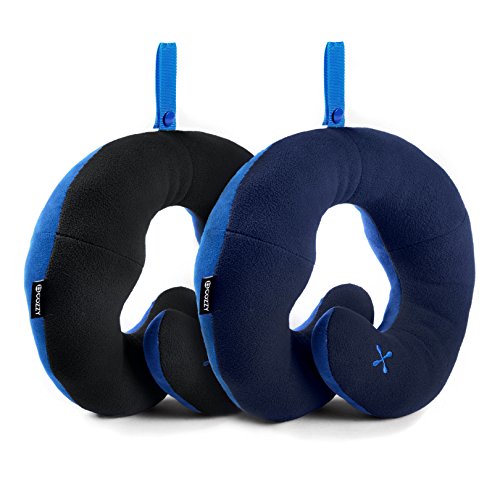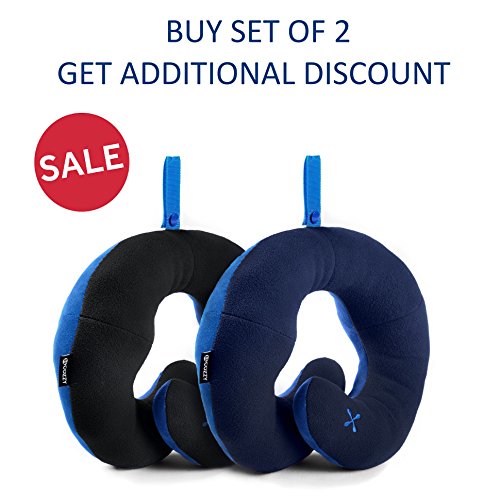BCOZZY Chin Supporting Travel Neck Pillow - Supports the Head, Neck and Chin in Maximum Comfort in Any Sitting Position. A Patented Product. Set of 2 SALE- Adult Size, BLACK+NAVY