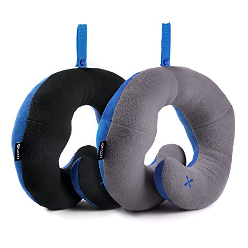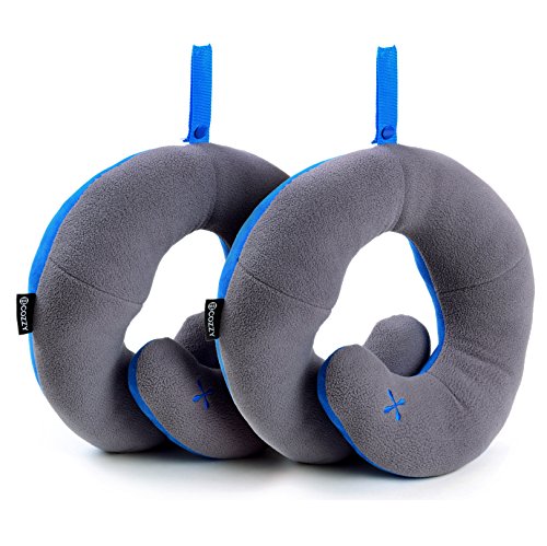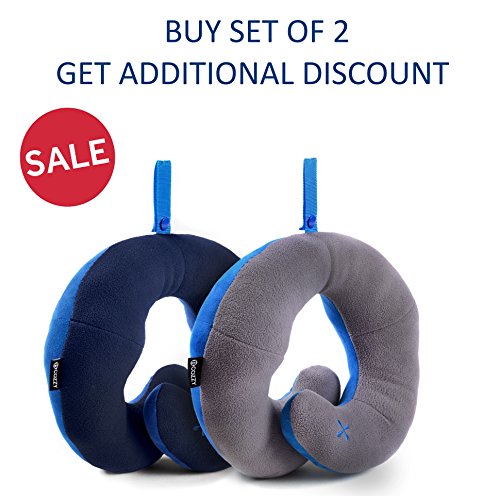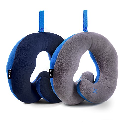 BCOZZY Chin Supporting Travel Neck Pillow - Supports the Head, Neck and Chin in Maximum Comfort in Any Sitting Position. A Patented Product. Set of 2 SALE- Adult Size, NAVY+GRAY