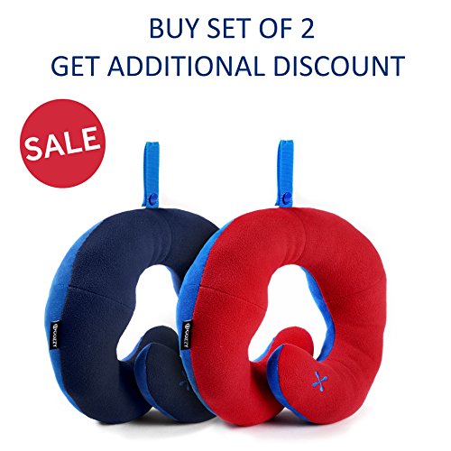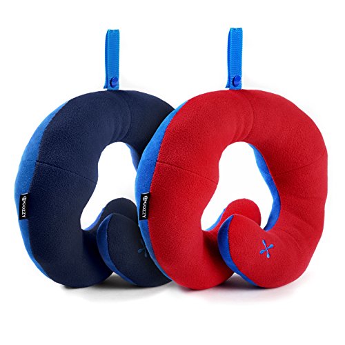 BCOZZY Chin Supporting Travel Neck Pillow - Supports the Head, Neck and Chin in Maximum Comfort in Any Sitting Position. A Patented Product. Set of 2 SALE- Adult Size, NAVY+RED