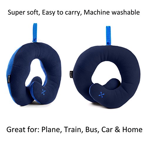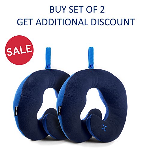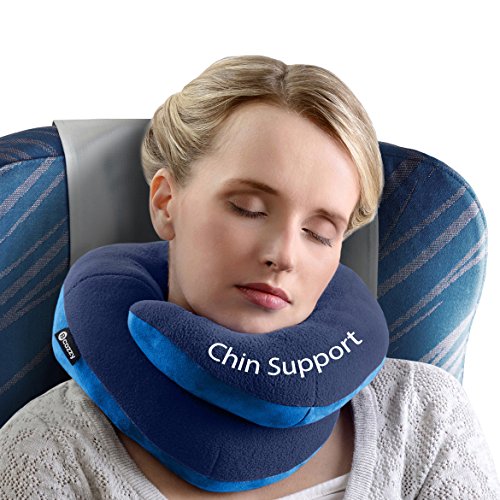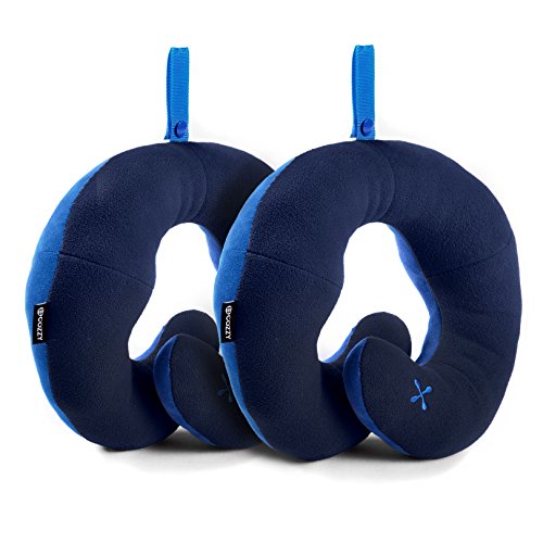 BCOZZY Chin Supporting Travel Pillow - Supports the Head, Neck and Chin in Maximum Comfort in Any Sitting Position. A Patented Product. Set of 2 (ADULT SIZE, NAVY + NAVY)