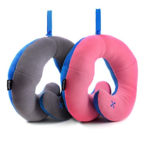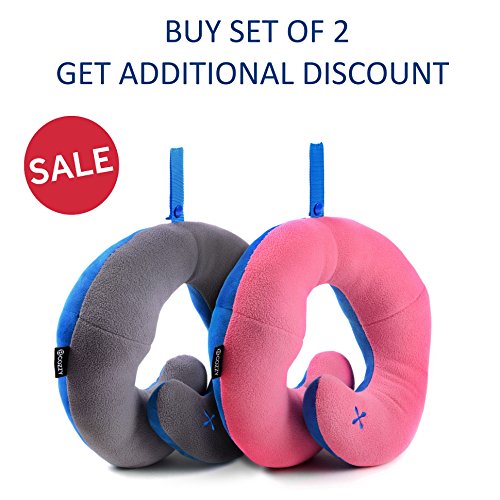 BCOZZY Chin Supporting Travel Neck Pillow - Supports the Head, Neck and Chin in Maximum Comfort in Any Sitting Position. A Patented Product. Set of 2 SALE- Adult Size, GRAY+PINK