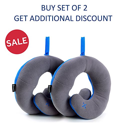 BCOZZY Chin Supporting Travel Neck Pillow - Supports the Head, Neck and Chin in Maximum Comfort in Any Sitting Position. A Patented Product. Set of 2 SALE- Adult Size, GRAY+GRAY