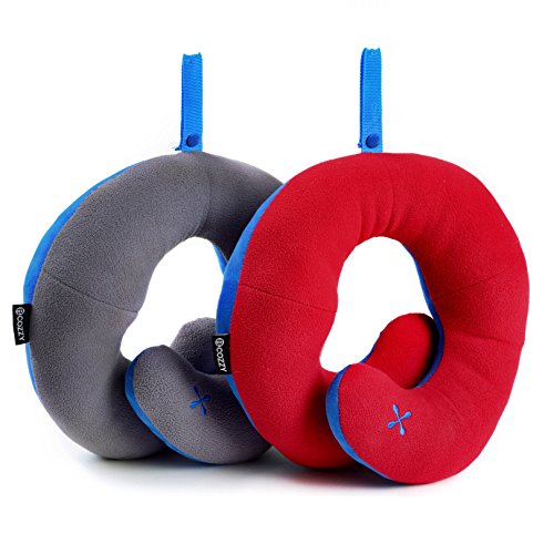 BCOZZY Chin Supporting Travel Neck Pillow - Supports the Head, Neck and Chin in Maximum Comfort in Any Sitting Position. A Patented Product. Set of 2 SALE- Adult Size, GRAY+RED