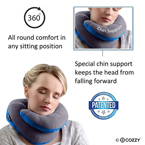 BCOZZY Chin Supporting Travel Pillow - Supports the Head, Neck and Chin in Maximum Comfort in Any Sitting Position. A Patented Product. Adult Size, GRAY