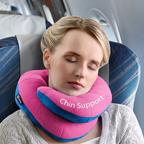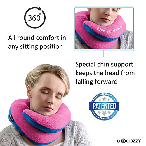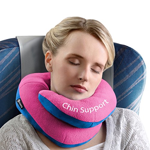 BCOZZY Chin Supporting Travel Pillow - Supports the Head, Neck and Chin in Maximum Comfort in Any Sitting Position. A Patented Product. Adult Size, PINK