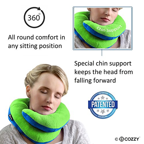 BCOZZY Chin Supporting Travel Pillow - Supports the Head, Neck and Chin in Maximum A Patented Product. (ADULT, APPLE-GREEN)