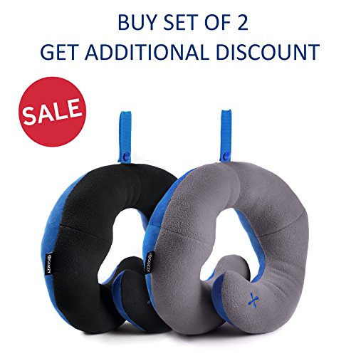 BCOZZY Chin Supporting Travel Neck Pillow - Supports the Head, Neck and Chin in Maximum Comfort in Any Sitting Position. A Patented Product. Set of 2 SALE- Adult Size, BLACK+GRAY