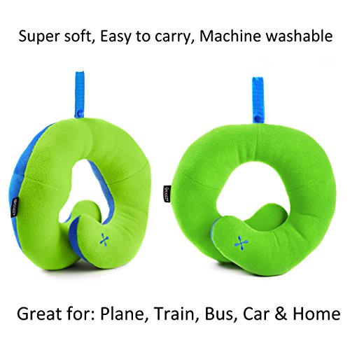 BCOZZY Kids Chin Supporting Travel Pillow – Complete 360° Support for Head, Neck, and Chin –Achieve Maximum Comfort in Any Sitting Position with Patented Neck Pillow – Child Size (APPLE-GREEN)