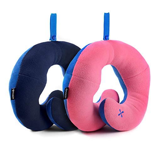 BCOZZY Chin Supporting Travel Neck Pillow - Supports the Head, Neck and Chin in Maximum Comfort in Any Sitting Position. A Patented Product. Set of 2 SALE- Adult Size, NAVY+PINK