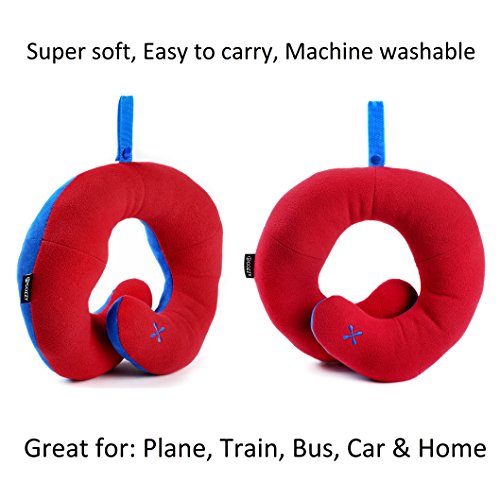 BCOZZY Kids Chin Supporting Travel Neck Pillow - Supports the Head, Neck and Chin in Maximum Comfort. A Patented Product. (CHILD Size, RED)