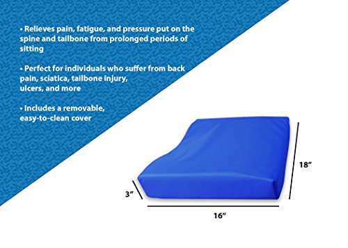 ReleaseDate : 2017-01-18 Studio : Rehabilitation Advantage Publisher : Rehabilitation Advantage Binding : Health and Beauty Product Description Rehabilitation Advantage Premium Coccyx Wheelchair Cushion is designed to help improve posture while relieving pain in the back or hips. It is perfect for individuals who suffer from back pain, sciatica, tailbone injury, ulcers, and more. This cushion is made from durable foam that retains its shape with repeated use. The scooped area provides excellent pressure relief, thus making for a great guide when sitting upright in any chair. This cushion redistributes weight evenly across its surface, while optimally supporting the user's entire body. This high quality cushion has a flame retardant cover made from a breathable fabric that ensures it will stand up to the wear and tear of frequent use. It is very simple to clean by easily wiping away stains of any type off this removable cover. Overall, it makes a great addition to any chair and provides the perfect amount of height, as well as support for your tailbone. Simply fasten to any chair with the use of the attached ties. Purchase yours today! 0
