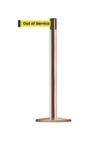 Tensabarrier 889U-2P-2P-STD-NO-YEX-C Polished Brass Post, 2" Wide, 7' 6" Length "Yellow Out of Service" Belt, 90" Length, Steel