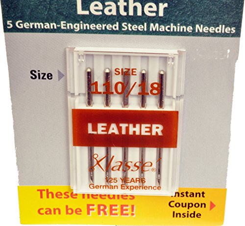 -. Feature : Klasse Leather 5PK SZ 110/18 (A5-104110) / Description: For genuine leather. Chisel point penetrates difficult to sew projects. Do no use with textiles or synthetic suede or leather.