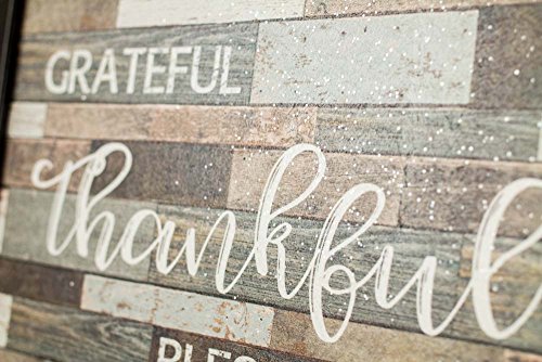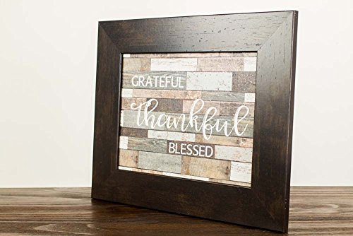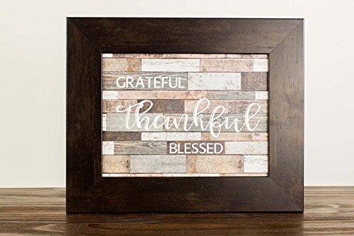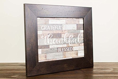 Grateful Thankful Blessed Rustic Sign Gift Distressed Restoration Wood Grey Art Decor 13x16" (Espresso Brown)