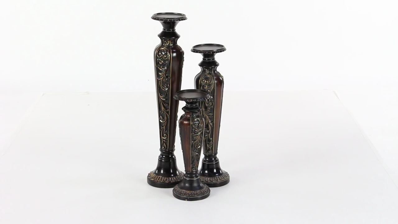 Deco 79 Polystone Candle Holder, 20 by 16 by 12-Inch, Set of 3