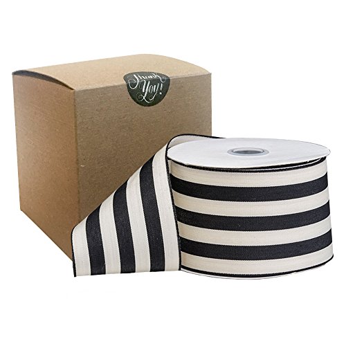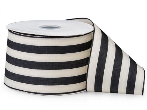 BonBon Paper Giftwrap Ribbon in Cabana Stripe (2.5 inch x 10 yds, black white)