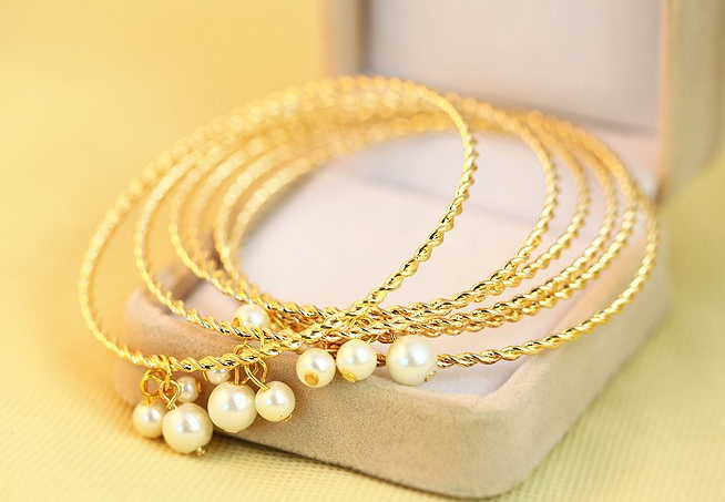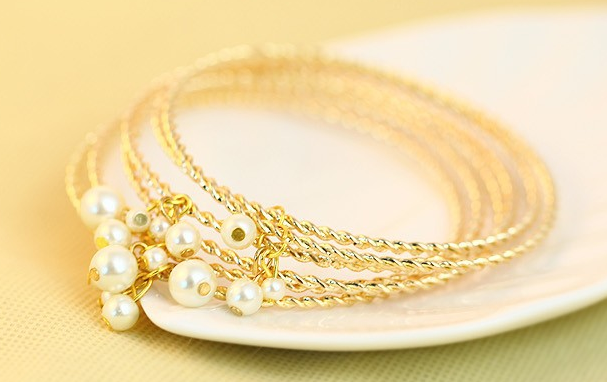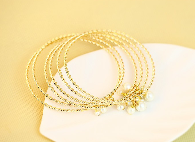 Gelang Fashion logam 6 pcs/set mutiara liontin emas perhiasan wanita Fashion metal weave bracelet 6 pcs/set pearl pendant gold Bangle jewelry for women JEW SJA0846535262 GHJ qty004