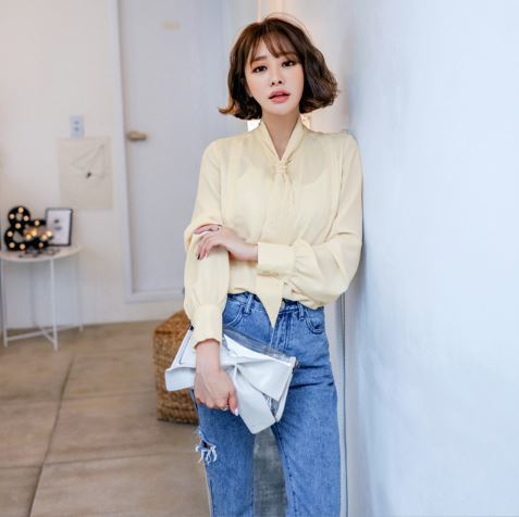 とろんとした生地感が女性らしい雰囲気を演出するボウタイブラウスのご紹介です。