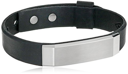 -. Title : Fossil Stainless Steel and Leather Bracelet, 9.25"