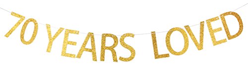 INNORU® 70 Years Loved Banner Gold Glitter Sign - 70th Birthday Party Decorations
