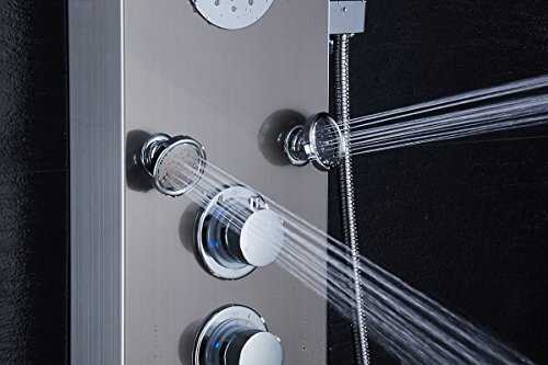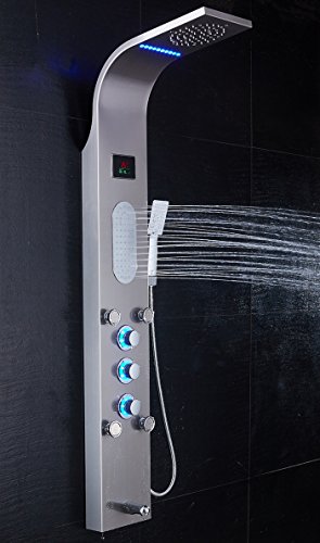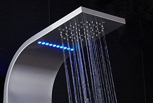 Shower panel has a rainfall waterfall shower head,water spout, a multi-functional 3-setting handheld shower and body jets spray pattern. Plumbing components are included, super easy install.