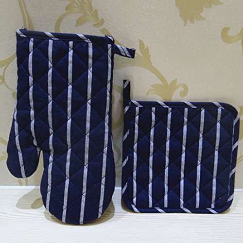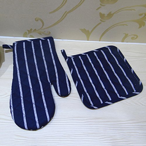 Katoot@ 1 Set Stripe Microwave Oven Glove and Anti-Slip Heat Insulation Table Mats Placemat Kitchen Cooking Tools