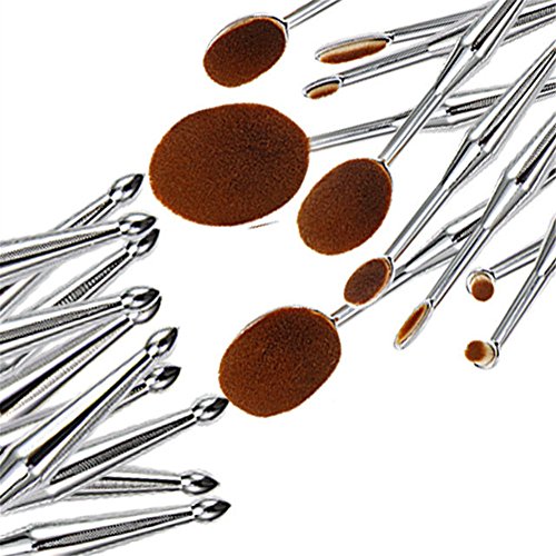 Kuulee New 10Pcs Toothbrush Oval Silver Mermaid Shape Makeup Brush Foundation Powder Eyebrow Make up Brushes Beauty Tools
