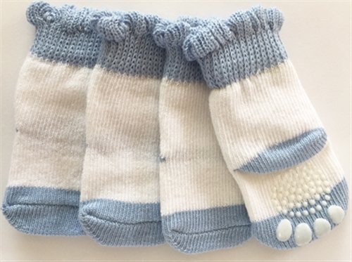 -. Binding : Misc. -. Brand : Puppe Love -. Feature : Available in 2 sizes and colors / Set of 4, one for each paw! / Washable cotton with non-slip bottoms / Measure the length and width of your dog's paw pad for a proper fit / Great for smaller dogs & puppies! -. Label : Puppe Love -. Manufacturer : Puppe Love -. PackageQuantity : 1 -. ProductGroup : Pet Products -. ProductTypeName : PET_SUPPLIES -. Publisher : Puppe Love -. Studio : Puppe Love -. Title : Non Slip Socks for Small Dogs