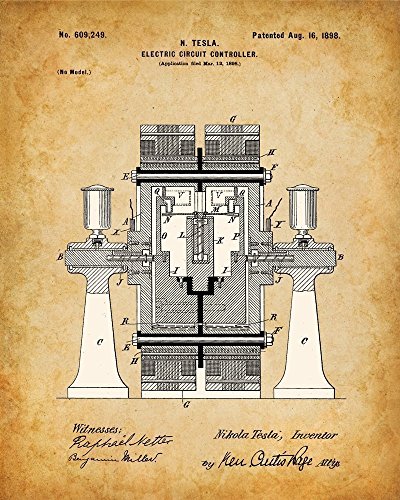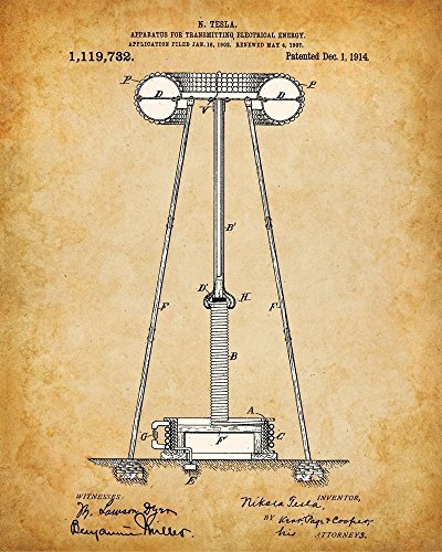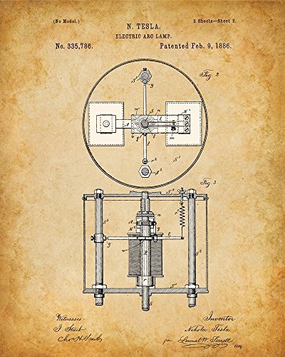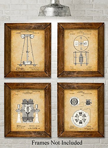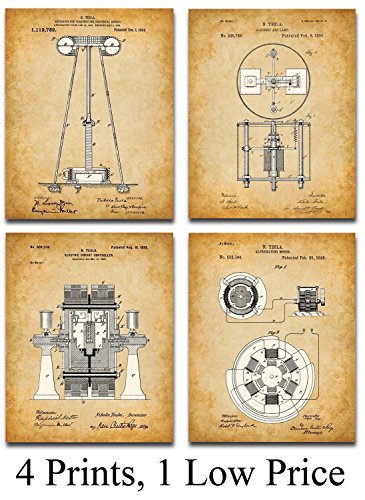 Bring the history of Nikola Tesla to your walls. These four prints show patents filed by Nikola Tesla between 1886-1914. The original patent artwork has been reinterpreted by award winning artist Norm Lanier.
