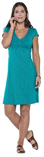 A dress so nice they named it twice. The seemingly simple yet downright sexy Rosemarie is made of Toad&Co's eco-friendly Samba (Tencel, organic cotton, spandex), giving it the kind of versatility other dresses only dream of. It breathes and moves and follows your curves. It dresses up and dresses down and flatters for days with a graceful V-neck, doubled fabric bodice, horizontal bust pleats, and an empire seam that flows into a soft, A-line drape.Feature