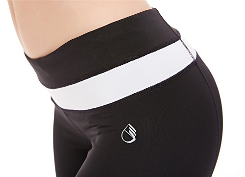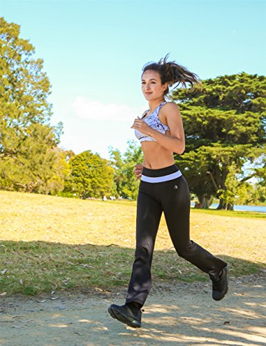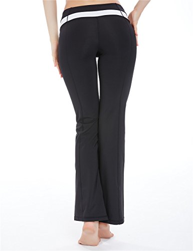 icyZone Women's Slimming Shaping Contrast Waist Yoga Bootcut Bootleg Pants Black