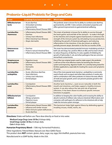 Probonix provides 8 of the top strains of probiotic and passes safely through the acidic environment of your pet's stomach giving the maximum benefit from every dose.