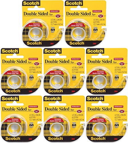 Scotch 3M Double-Sided Tape with Dispenser, Permanent, 1/2 X 250 Inches, Clear (Pack of 8)